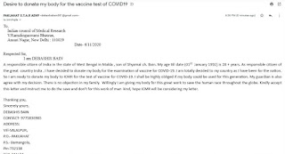 এবিষয়ে দেবাশীষ বাইন বলেন এই করোনা ভাইরাস টিকা মানবদেহের পরীক্ষা মূলক প্রয়োগ করার জন্য নিজের ইচ্ছে আমি এগিয়ে এসেছি এই ভাবে এগিয়ে আসতে হবে দেশের জন্য আমাদের এই যুব সমাজকে। করোনার ভাইরাস সংক্রমণের যে টিকা মানবদেহের পরীক্ষার জন্য দেহদানের জন্য আবেদন পত্র অনলাইনে জমা করেছি এখন উত্তরের আসাই রয়েছি।