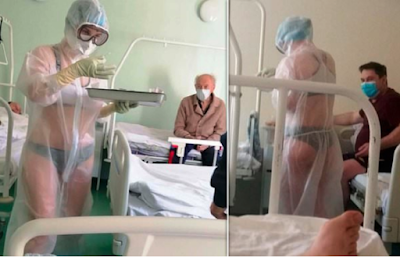 সৌজন্যে :ইন্টারনেট(cn)  -এটা খুবই স্বাভাবিক দৃশ্য যেকোনও হাসপাতালে পুরুষ ওয়ার্ডেই নির্দ্বিধায় রোগীদের সামলাচ্ছেন নার্স। কিন্তু যদি বিশেষ কোনও পোশাকে নার্স এই পরিষেবা দেয় তবে সেটা দেখে চমকে যাবে সকলে সেটাই স্বাভাবিক। তেমনই একটি ব্যাতিক্রমী পোশাক পড়ে হাসপাতালে রোগীদের পরিচর্যা করতে দেখা গেল এক রাশিয়ান নার্সকে। পরনে স্বচ্ছ পিপিই। আর ভিতরে শুধুমাত্র অন্তর্বাস।