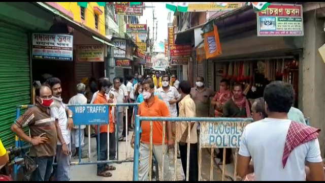 মন্দির না খোলা হলেও ভক্তদের প্রবেশের অনুমতি দিক প্রশাসন।কিছুটা হলেও আয়ের পথ খুলবে বলে দাবি মন্দিরের প্রবেশ পথ এর ব্যবসায়ী দের।এই দাবিতে এদিন পুলিশি গাডওয়াল সরানো এবং যাত্রী দের প্রবেশে নিষেধাজ্ঞা তুলতে মন্দির সংলগ্ন এলাকায় বিক্ষোভ দেখান বেশ কয়েক জন মন্দিরের প্রবেশ পথ এর ব্যবসায়ী এবং পথ প্রবেশকারীরা ।তাদের দাবি মন্দির বন্ধ থাকলেও ভক্ত প্রবেশে প্রশাসনিক নিষেধাজ্ঞা তুলে দেওয়া হোক মন্দির সংলগ্ন এলকায়।খবর পেয়ে ঘটনা স্থুলে যায় তারকেশ্বর থানার পুলিশ এবং তারকেশ্বর পৌর প্রসাশক শ্বপন সামন্ত।সমস্ত দিক আলোচনা করে তাদের দাবি খতিয়ে দেখে ব্যবস্থা নেওয়ার আশ্বাস দেয় পুলিশ প্রশাসন।