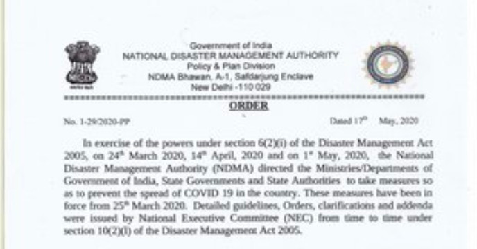 সৌজন্যে :ইন্টারনেট–এনিয়ে আগেই ইঙ্গিত দিয়েছিলেন প্রধানমন্ত্রী। লকডাউনের মেয়াদ ৩১ মে পর্যন্ত বাড়াল কেন্দ্র।তারমানে আগামী ১৪ দিন ঘরেই থাকতে হচ্ছে দেশের অধিকাংশ মানুষকে। তবে প্রধানমন্ত্রী জানিয়েছিলেন চতুর্থ দফার লকডাউন এর নিয়মকানুন হবে একেবারেই আলাদা।এনিয়ে প্রয়োজনীয় নির্দেশিকা জারি করল কেন্দ্রীয় স্বরাষ্ট্র মন্ত্রক।সোমবার থেকেই নয়া লকডাউনের দিন শুরু হয়ে যাচ্ছে। ৩১ মে পর্যন্ত জারি হল লকডাউন। বিকেলেই প্রকাশিত হল নয়ানির্দেশিকা।