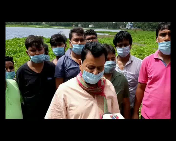 মন্ত্রী স্বপন দেবনাথ পুকুরে কচুরিপানা পরিষ্কার করতে নেমে পড়লেন