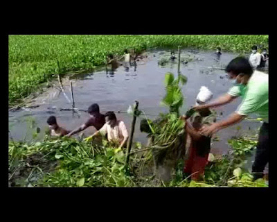 রবিবার এক অদ্ভুত দৃশ্য দেখলো পূর্বস্থলির মানুষ জন। এদিন পূর্ব বর্ধমান জেলার পূর্বস্থলী ১ নম্বর ব্লক এর বেশ কিছু যুবক কে নিয়ে  নেমে পড়লেন পুকুরে। এলাকার একটি স্নান করার পুকুরে গজিয়ে উঠেছিল কচুরিপানা। অসুবিধার সম্মুখীন হয়েছিল এলাকাবাসি। তাই অবশেষে নিজেই নেমে পড়লেন কচুরি পানা  পরিষ্কার করতে। যা দেখে অবাক এলাকার মানুষজন।